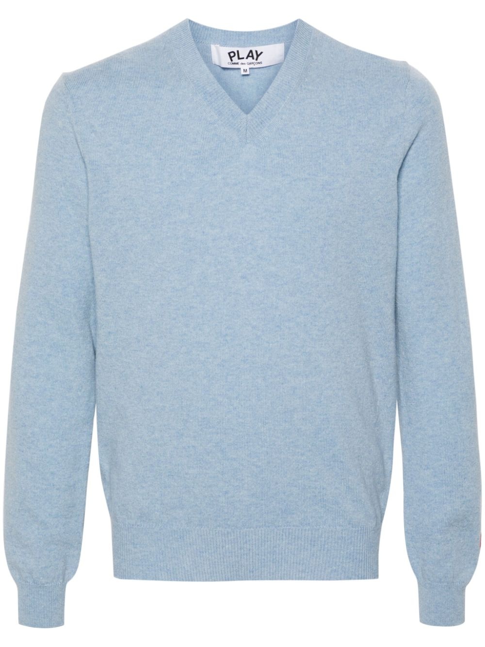 logo-applique wool jumper Highlights - Light blue - Wool - Knitted construction - Signature heart patch - Ribbed v-neck - Long sleeves - Ribbed cuffs and hem - When buying this unisex item, keep in mind that it is graded in standard men's sizing. Imported Composition Wool 100% SIZE & FIT Model measurements Height 5 ft 10 in(1.77 m) Bust/Chest 33.07 in(84 cm) Hips 37 in(94 cm) Waist 24.8 in(63 cm) Measurement CHEST 37.79 in(96 cm) SLEEVE LENGTH 25.59 in(65 cm) LENGTH 25.19 in(64 cm) Shoulder Width 14.96 in(38 cm) FittingInformation Designed for a relaxed fit, this piece allows for comfort and movement when worn Made with a midweight knit, this piece offers some stretch This piece fits true to size – take your usual size