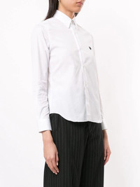 logo embroidered plain shirt White cotton logo embroidered plain shirt from Comme Des Garcons Play featuring a contrast embroidered logo at the chest, a pointed collar, a front button fastening, long sleeves, button cuffs and a curved hem. Imported Composition Cotton 100% SIZE & FIT Model measurements Height 5 ft 10 in(1.78 m) Bust/Chest 31.49 in(80 cm) Hips 34.64 in(88 cm) Waist 23.62 in(60 cm) FittingInformation This piece fits true to size. We recommend you get your regular size Cut for a slim fit Made with a lightweight fabric Washing instructions Machine Wash