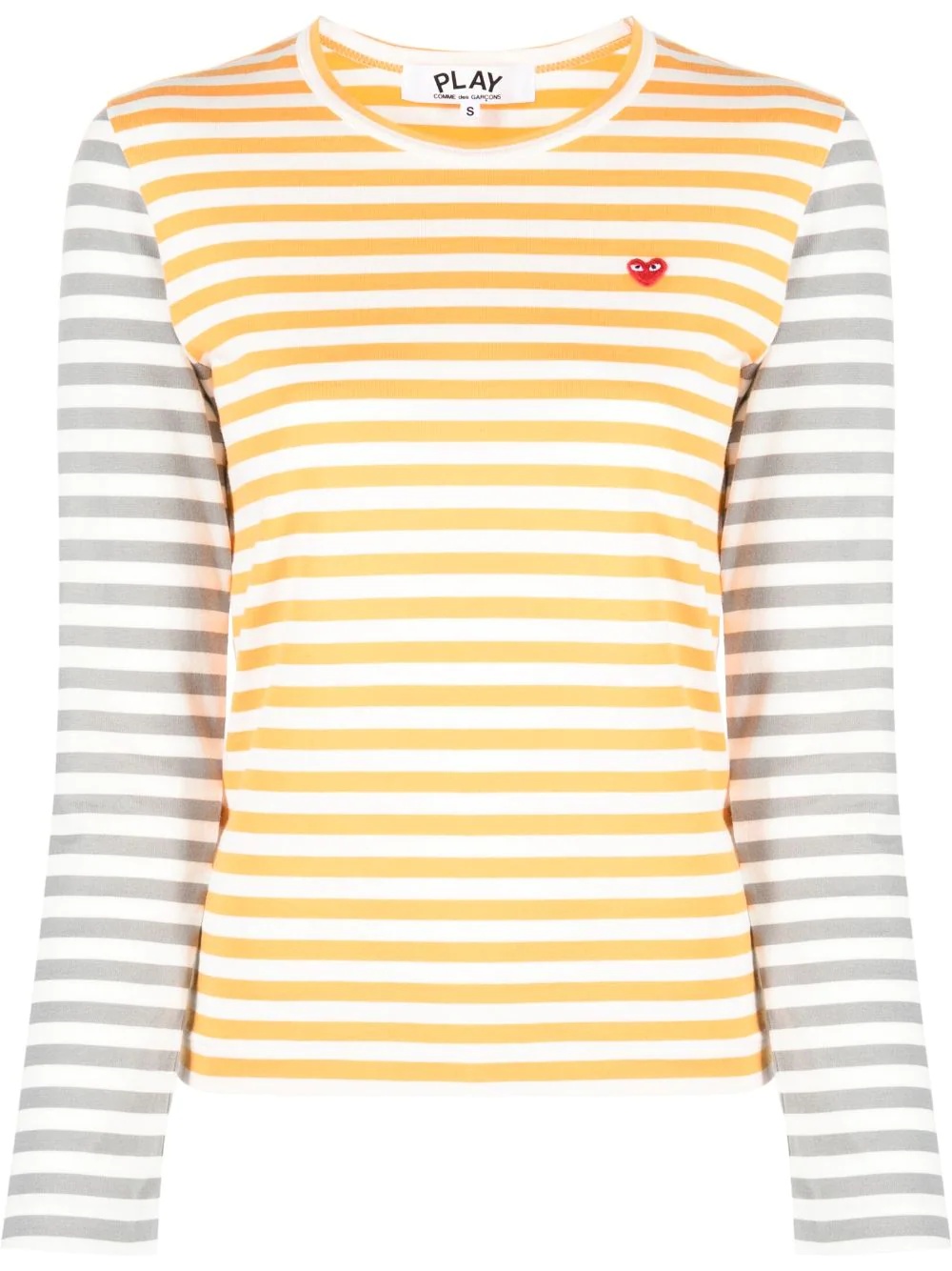 logo-patch striped T-shirt With a classic design, this Comme Des Garcons Play long-sleeved T-shirt is elevated by the iconic heart motif on the chest, standing out from the multicoloured striped background. Imported Composition Cotton 100% SIZE & FIT Model measurements Height 5 ft 11 in(1.8 m) Bust/Chest 32.67 in(83 cm) Hips 36.22 in(92 cm) Waist 24.4 in(62 cm) Measurement BUST 30.7 in(78 cm) FittingInformation This piece fits true to size. We recommend you get your regular size Cut for a slim fit Made with a mid-weight fabric Washing instructions Hand Wash