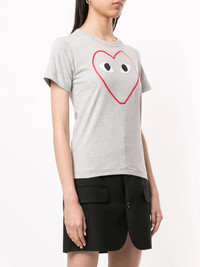 logo-print crew neck T-shirt Light grey cotton logo-print crew neck T-shirt from Comme Des Garcons Play featuring a printed logo to the front, a crew neck, short sleeves and a straight hem. Imported Composition Cotton 100% SIZE & FIT Model measurements Height 5 ft 10 in(1.78 m) Bust/Chest 31.49 in(80 cm) Hips 34.64 in(88 cm) Waist 23.62 in(60 cm) Measurement SLEEVE LENGTH 6.69 in(17 cm) Shoulder Width 12.99 in(33 cm) LENGTH 20.86 in(53 cm) BUST 29.92 in(76 cm) FittingInformation Designed for a relaxed fit, this piece allows for comfort and movement when worn Made from a midweight non-stretch fabric, this piece offers minimal elasticity when worn This piece fits small – take one size up Washing instructions Hand Wash