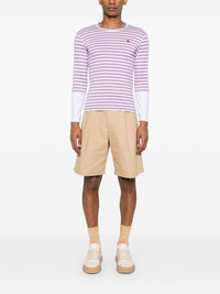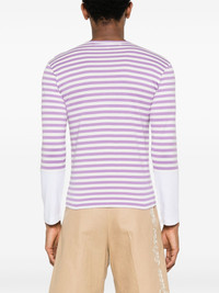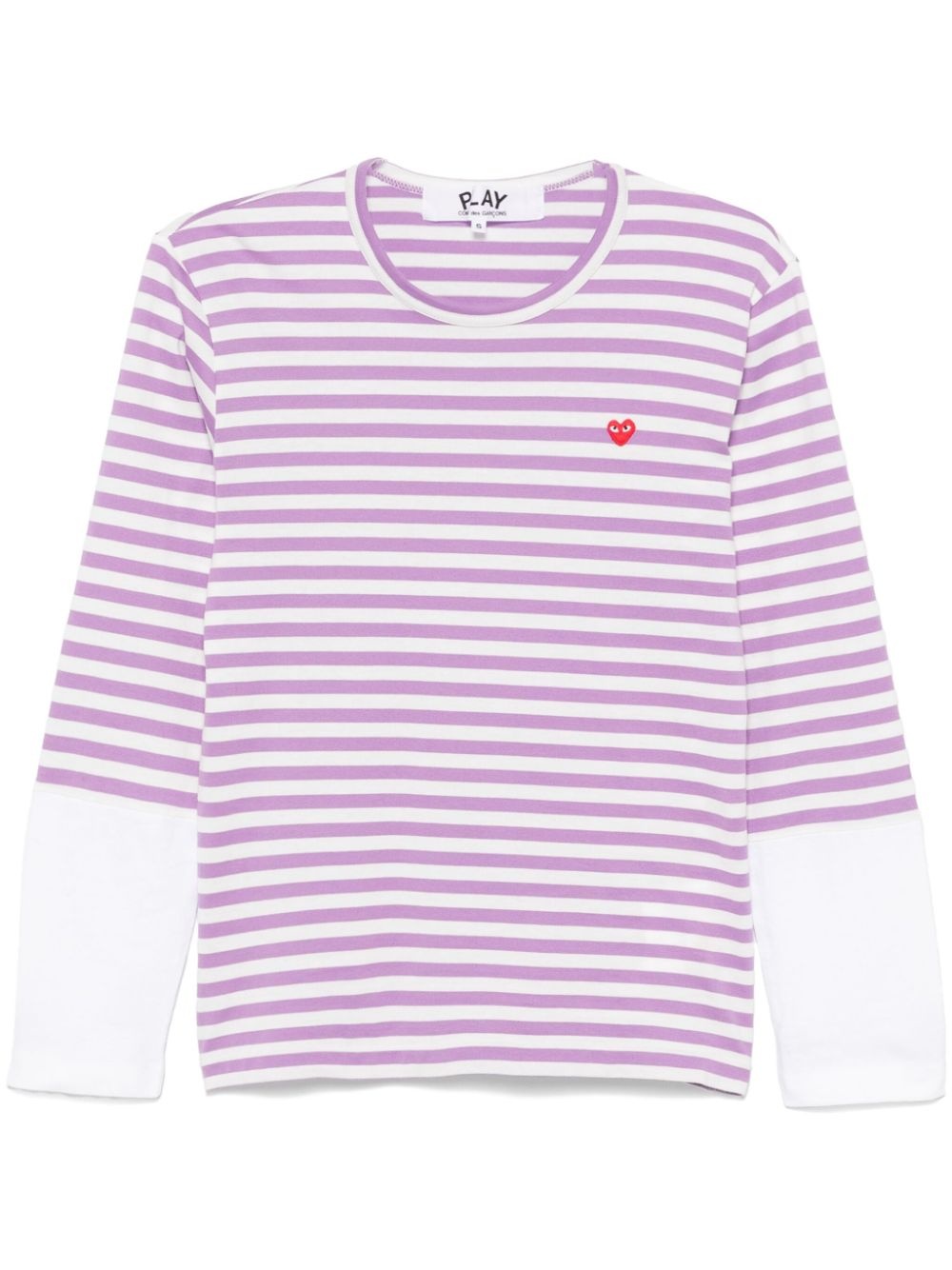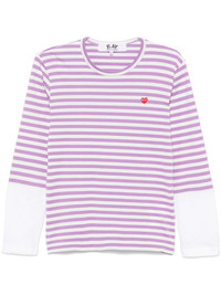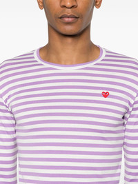 long-sleeve striped T-shirt Highlights - Lavender purple/white - Cotton - Lightweight jersey - Horizontal stripe pattern - Crew neck - Long sleeves - Signature heart patch - Straight hem - When buying this unisex item, keep in mind that it is graded in standard men's sizing. Made in Italy Composition Cotton 100% SIZE & FIT FittingInformation Designed for a relaxed fit, this piece allows for comfort and movement when worn Made from a midweight non-stretch fabric, this piece offers minimal elasticity when worn This piece fits small – take one size up Measurement LENGTH 26.37 in(67 cm) SLEEVE LENGTH 23.22 in(59 cm) Shoulder Width 17.71 in(45 cm) CHEST 38.58 in(98 cm)