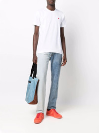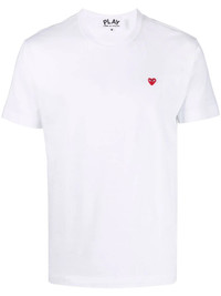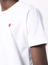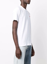 micro heart round-neck T-shirt white cotton signature heart patch round neck short sleeves straight hem Imported Composition Cotton 100% SIZE & FIT Model measurements Height 6 ft 3 in(1.9 m) Bust/Chest 35.43 in(90 cm) Hips 35.82 in(91 cm) Waist 27.95 in(71 cm) Measurement BUST 36.22 in(92 cm) FittingInformation This piece fits true to size. We recommend you get your regular size Cut for a relaxed fit Made with a mid-weight fabric Washing instructions Machine Wash