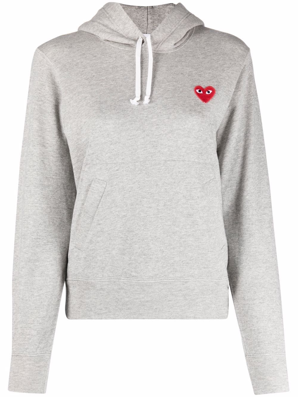 patch-detail hoodie Grey cotton patch-detail hoodie from COMME DES GARCONS PLAY featuring patch detail, drawstring hood, two side inset pockets, long sleeves, elasticated cuffs and elasticated hem. Made in Italy Composition Cotton 100% SIZE & FIT Model measurements Height 5 ft 9 in(1.75 m) Bust/Chest 32.67 in(83 cm) Hips 36.22 in(92 cm) Waist 24.8 in(63 cm) FittingInformation Designed for a relaxed fit, this piece allows for comfort and movement when worn This piece fits small – take one size up Washing instructions Machine Wash