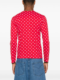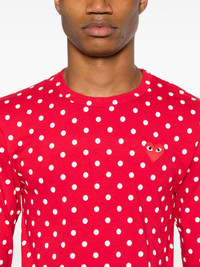 polka-dot cotton T-shirt Highlights - Rose red/white - Cotton - Lightweight jersey - Polka dot print - Signature heart patch - Crew neck - Long sleeves - Straight hem - When buying this unisex item, keep in mind that it is graded in standard men's sizing. Imported Composition Cotton 100% SIZE & FIT Model measurements Height 5 ft 11 in(1.8 m) Bust/Chest 32.67 in(83 cm) Hips 36.22 in(92 cm) Waist 24.4 in(62 cm) FittingInformation This unisex piece is designed for a slim fit whether you usually select women's or men's sizes Made from a midweight non-stretch fabric, this piece offers minimal elasticity when worn