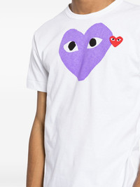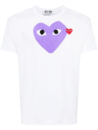 signature heart motif cotton T-shirt Highlights - White/purple/red - Cotton - Signature heart print - Signature heart patch - Crew neck - Short sleeves - Straight hem - When buying this unisex item, keep in mind that it is graded in standard men's sizing. Imported Composition Cotton 100% SIZE & FIT Model measurements Height 6 ft 3 in(1.9 m) Bust/Chest 35.03 in(89 cm) Hips 36.61 in(93 cm) Waist 29.13 in(74 cm) FittingInformation This piece is unisex – expect a slim fit if you usually select men's sizing; expect a looser fit if you usually select women's sizes Made from a midweight non-stretch fabric, this piece offers minimal elasticity when worn Measurement CHEST 36.22 in(92 cm) LENGTH 25.19 in(64 cm) SLEEVE LENGTH 7.48 in(19 cm) Shoulder Width 16.14 in(41 cm)