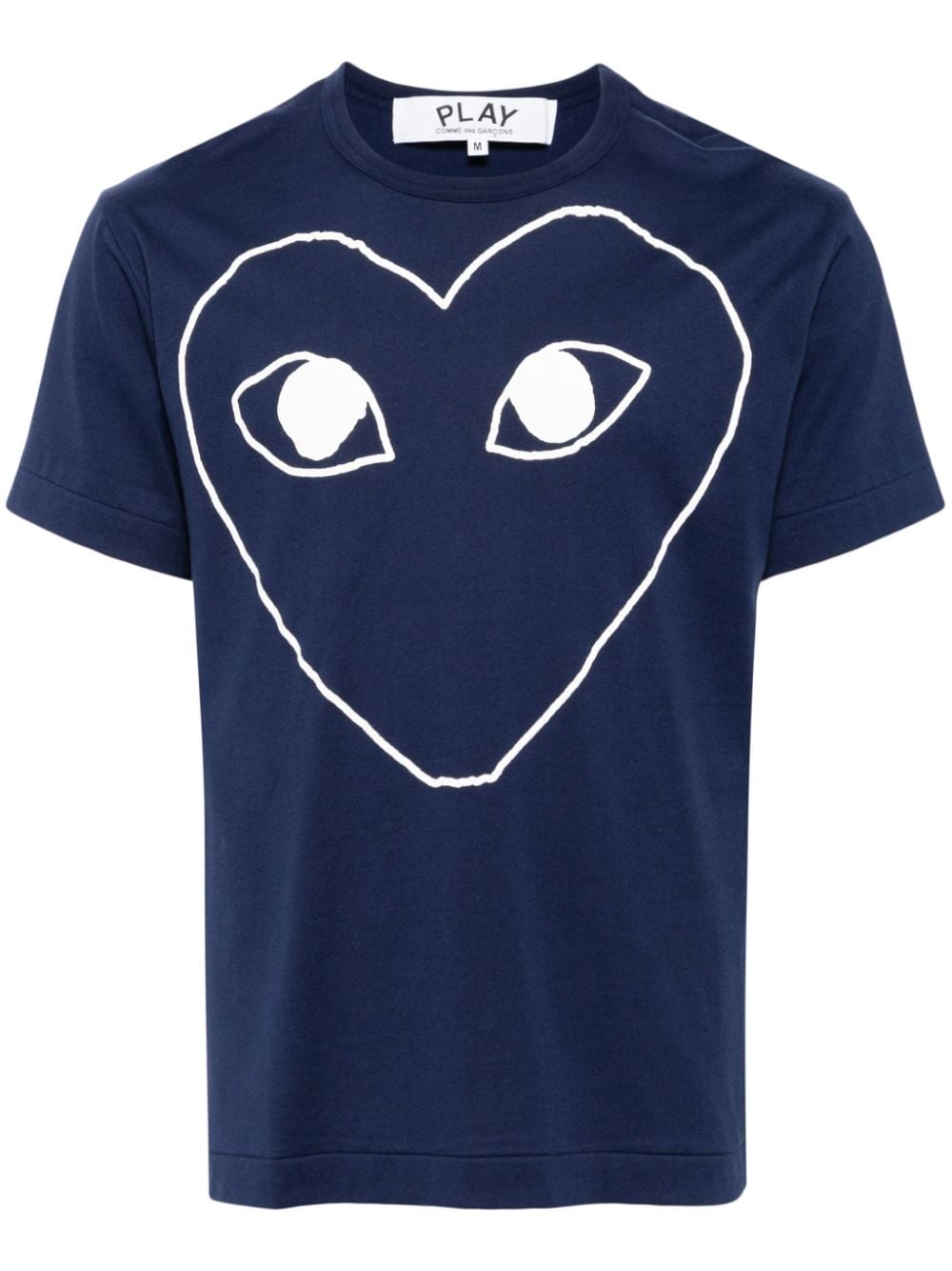 signature heart print cotton T-shirt Highlights - Navy/white - Cotton - Signature heart print - Crew neck - Short sleeves - Straight hem - When buying this unisex item, keep in mind that it is graded in standard men's sizing. Imported Composition Cotton 100% SIZE & FIT Model measurements Height 6 ft 3 in(1.9 m) Bust/Chest 35.03 in(89 cm) Hips 36.61 in(93 cm) Waist 29.13 in(74 cm) FittingInformation This piece is unisex – expect a slim fit if you usually select men's sizing; expect a looser fit if you usually select women's sizes Made from a midweight non-stretch fabric, this piece offers minimal elasticity when worn