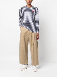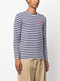 stripe-pattern cotton T-shirt red/white/blue cotton heart motif horizontal stripe pattern round neck long sleeves straight hem Imported Composition Cotton 100% SIZE & FIT Model measurements Height 6 ft 2 in(1.87 m) Bust/Chest 37 in(94 cm) Hips 33.85 in(86 cm) Waist 27.95 in(71 cm) FittingInformation Designed for a relaxed fit, this piece allows for comfort and movement when worn Made from a midweight non-stretch fabric, this piece offers minimal elasticity when worn This piece fits small – take one size up Washing instructions Hand Wash