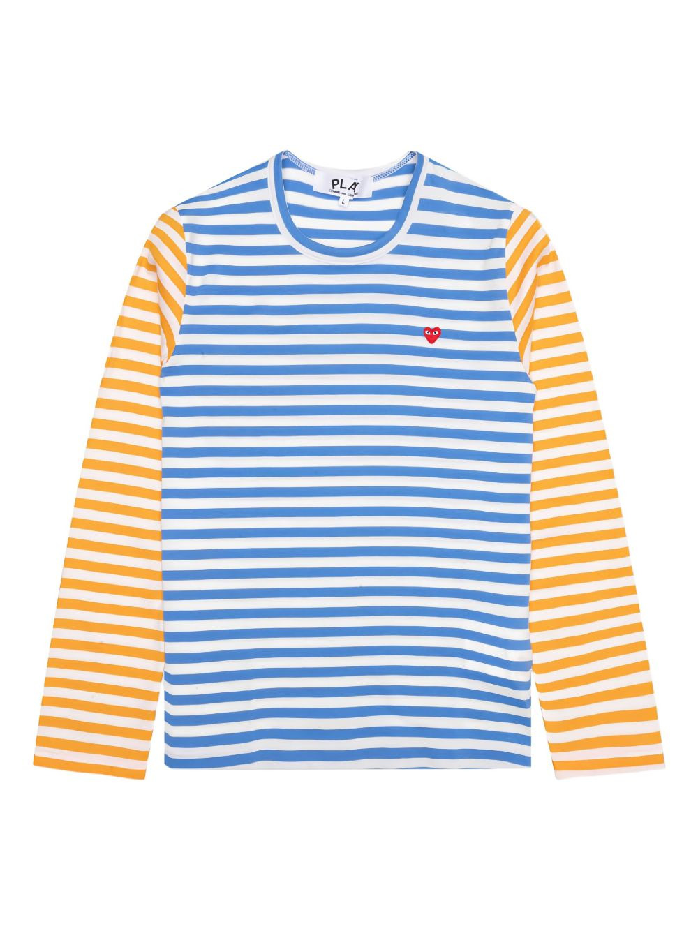 UNISEX LONG SLEEVES TEE BI-COLOUR STRIPED - BLUE/YELLOW