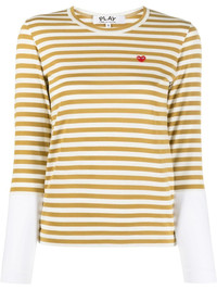 striped long-sleeved T-shirt olive/white cotton horizontal stripe pattern heart patch crew neck long sleeves straight hem Imported Composition Cotton 100% SIZE & FIT Model measurements Height 5 ft 10 in(1.78 m) Bust/Chest 32.28 in(82 cm) Hips 35.03 in(89 cm) Waist 23.22 in(59 cm) Measurement BUST 29.13 in(74 cm) FittingInformation This piece fits true to size. We recommend you get your regular size Cut for a slim fit Made with a mid-weight fabric Washing instructions Hand Wash