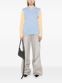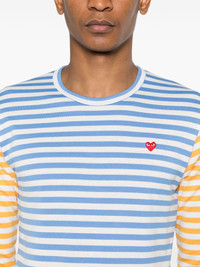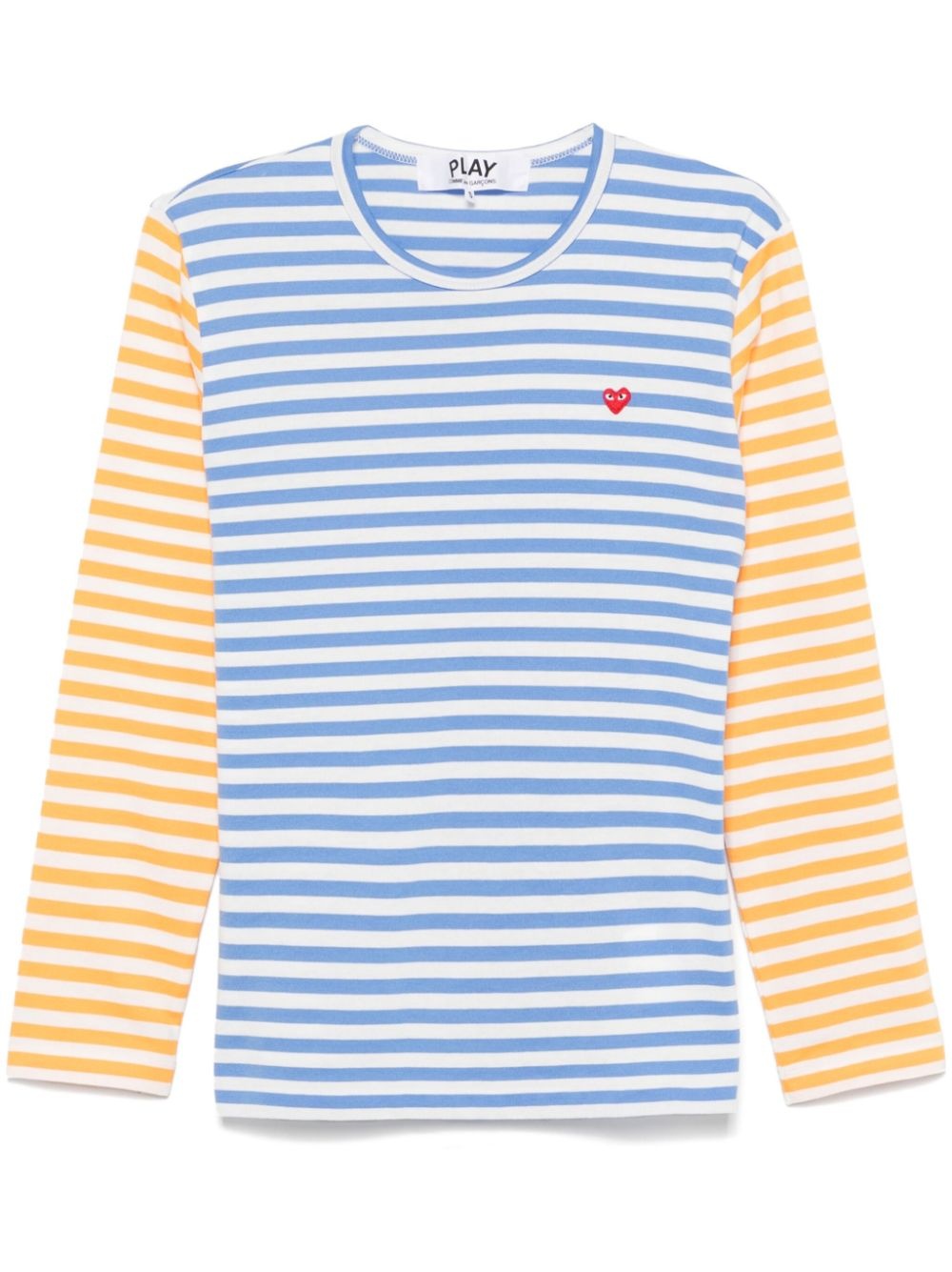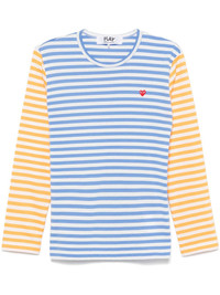 striped T-shirt Highlights - White/cerulean blue/amber yellow - Cotton - Jersey texture - Horizontal stripe pattern - Round neck - Signature heart patch - Long sleeves - Straight hem - When buying this unisex item, keep in mind that it is graded in standard men's sizing. Imported Composition Cotton 100% SIZE & FIT Measurement BUST 34.64 in(88 cm) FittingInformation This piece is unisex – expect a slim fit if you usually select men's sizing; expect a looser fit if you usually select women's sizes Made from a midweight non-stretch fabric, this piece offers minimal elasticity when worn