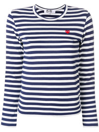 striped T-shirt Navy and white cotton striped T-shirt from Comme Des Garcons Play. Imported Composition Cotton 100% SIZE & FIT Model measurements Height 5 ft 10 in(1.79 m) Bust/Chest 34.25 in(87 cm) Hips 35.43 in(90 cm) Waist 24.01 in(61 cm) Measurement Shoulder Width 13.77 in(35 cm) BUST 62.59 in(159 cm)