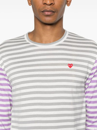 striped T-shirt Highlights - White/grey/purple - Cotton - Jersey texture - Horizontal stripe pattern - Round neck - Signature heart patch - Long sleeves - Straight hem - When buying this unisex item, keep in mind that it is graded in standard men's sizing. Imported Composition Cotton 100% SIZE & FIT Measurement BUST 34.64 in(88 cm) FittingInformation This piece is unisex – expect a slim fit if you usually select men's sizing; expect a looser fit if you usually select women's sizes Made from a midweight non-stretch fabric, this piece offers minimal elasticity when worn
