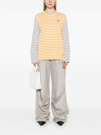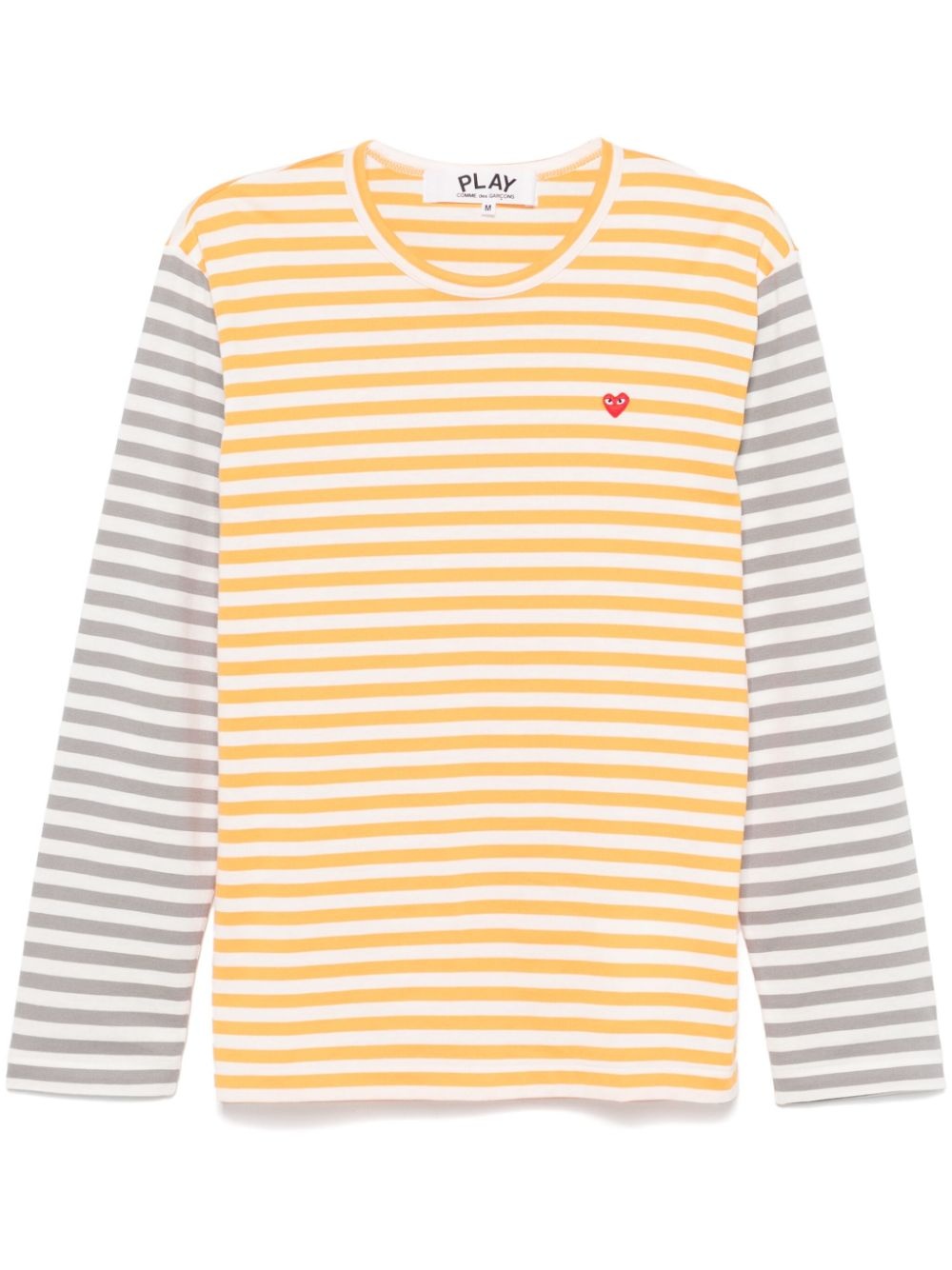 striped T-shirt Highlights - Amber yellow/ash grey/white - Cotton - Jersey texture - Horizontal stripe pattern - Crew neck - Applique logo - Long sleeves - Straight hem - When buying this unisex item, keep in mind that it is graded in standard men's sizing. Imported Composition Cotton 100% SIZE & FIT Measurement BUST 41.73 in(106 cm) FittingInformation This piece is unisex – expect a slim fit if you usually select men's sizing; expect a looser fit if you usually select women's sizes Made from a midweight non-stretch fabric, this piece offers minimal elasticity when worn