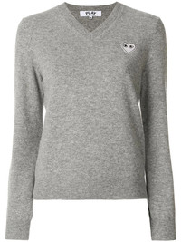 Grey Heart Patch V-Neck Sweater