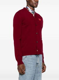 V-neck wool cardigan Highlights - Burgundy - Wool - Knitted construction - Signature heart patch - Ribbed v-neck - Front button fastening - Long sleeves - Ribbed cuffs and hem - When buying this unisex item, keep in mind that it is graded in standard men's sizing. Imported Composition Wool 100% SIZE & FIT Model measurements Height 5 ft 9 in(1.75 m) Bust/Chest 34.64 in(88 cm) Hips 36.61 in(93 cm) Waist 26.37 in(67 cm) Measurement LENGTH 24.8 in(63 cm) SLEEVE LENGTH 25.19 in(64 cm) Shoulder Width 14.96 in(38 cm) FittingInformation This piece is unisex – expect a slim fit if you usually select men's sizing; expect a looser fit if you usually select women's sizes The ribbed hem offers a close, comfortable fit Made with a midweight knit, this piece offers some stretch