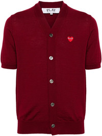 V-neck wool cardigan Highlights - Burgundy - Wool - Knitted construction - Signature heart patch - Ribbed v-neck - Front button fastening - Short sleeves - Ribbed cuffs and hem - When buying this unisex item, keep in mind that it is graded in standard men's sizing. Imported Composition Wool 100% SIZE & FIT Model measurements Height 5 ft 11 in(1.8 m) Bust/Chest 32.67 in(83 cm) Hips 36.22 in(92 cm) Waist 24.4 in(62 cm) FittingInformation This unisex piece is designed for a relaxed fit whether you usually select women's or men's sizes The ribbed hem offers a close, comfortable fit Made with a midweight knit, this piece offers some stretch