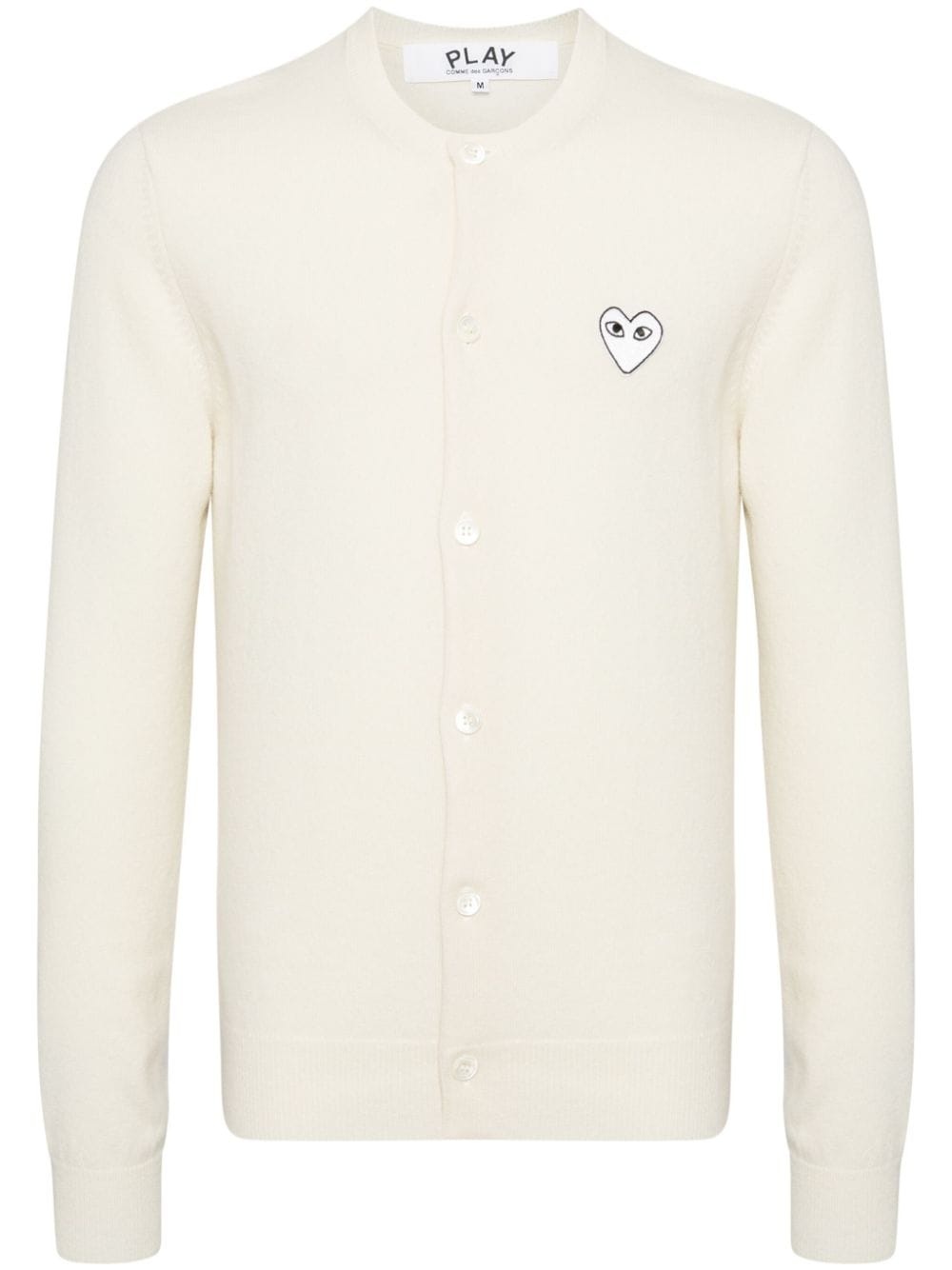 wool cardigan Highlights - Neutral white - Wool - Heart patch at the chest - Round neck - Front button fastening - Long sleeves - Ribbed cuffs and hem - Internal logo patch - When buying this unisex item, keep in mind that it is graded in standard men's sizing. Imported Composition Wool 100% SIZE & FIT Model measurements Height 6 ft 3 in(1.9 m) Bust/Chest 35.03 in(89 cm) Hips 36.61 in(93 cm) Waist 29.13 in(74 cm) FittingInformation This piece is unisex – expect a slim fit if you usually select men's sizing; expect a looser fit if you usually select women's sizes The ribbed hem offers a close, comfortable fit Made with a midweight knit, this piece offers some stretch