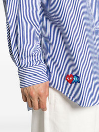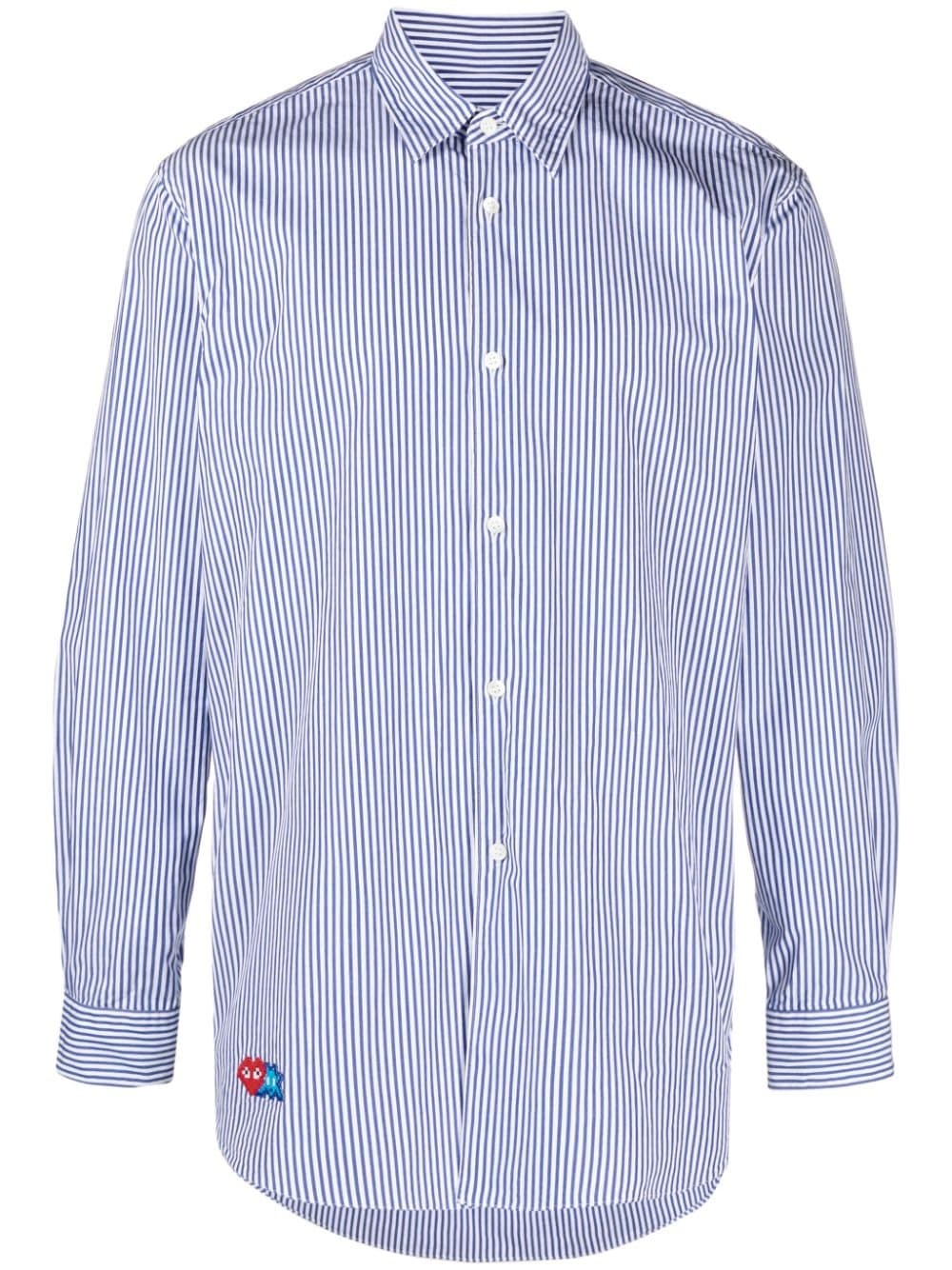 x Invader Pixel-patch striped cotton shirt Highlights - Blue/white - Cotton - Vertical stripe pattern - Pixel logo patch to the front - Classic collar - Front button fastening - Long sleeves - Buttoned cuffs - Curved hem Imported Composition Cotton 100% SIZE & FIT Model measurements Height 6 ft 2 in(1.87 m) Bust/Chest 36.61 in(93 cm) Hips 35.03 in(89 cm) Waist 27.95 in(71 cm) FittingInformation Designed for a relaxed fit, this piece allows for comfort and movement when worn Made from a midweight non-stretch fabric This piece fits true to size – take your usual size