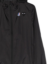 x K-Way zipped hooded jacket Highlights - Black - Logo print at the chest - Signature heart print - Signature heart patch - Slouchy drawstring hood - High neck - Front zip fastening - Storm flap - Long sleeves - Elasticated cuffs - Two side zip-fastening pockets - Elasticated hem - When buying this unisex item, keep in mind that it is graded in standard men's sizing. Imported Composition Polyamide 100%