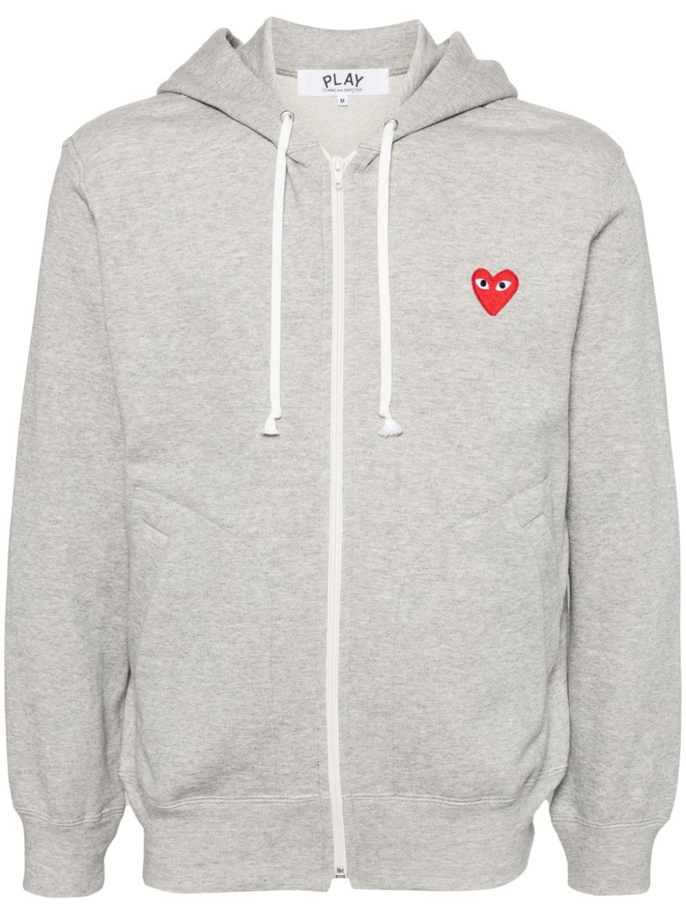 zipped almond eye heart hoodie Highlights - Grey/red/black - Cotton - Heart motif at the cheat - Logo print to the rear - Drawstring hood - Front zip fastening - Two side pouch pockets - Ribbed cuffs and hem - When buying this unisex item, keep in mind that it is graded in standard men's sizing. Imported Composition Cotton 100% SIZE & FIT Model measurements Height 6 ft 3 in(1.9 m) Bust/Chest 35.03 in(89 cm) Hips 36.61 in(93 cm) Waist 29.13 in(74 cm) Measurement CHEST 39.37 in(100 cm) SLEEVE LENGTH 22.83 in(58 cm) LENGTH 24.4 in(62 cm) Shoulder Width 18.11 in(46 cm) FittingInformation This piece is unisex – expect a slim fit if you usually select men's sizing; expect a looser fit if you usually select women's sizes The ribbed hem offers a close, comfortable fit Made from a midweight non-stretch fabric, this piece offers minimal elasticity when worn Washing instructions Hand Wash