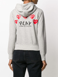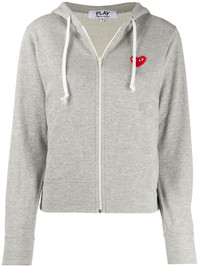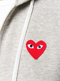 zipped almond eye heart hoodie Grey cotton zipped almond eye heart hoodie from Comme Des Garcons Play featuring a printed logo to the rear, a signature almond-eye heart print to the rear, a heart-shaped patch to the chest, a hood with drawstring tie fastenings, long sleeves, a front zip fastening, two front pockets and a slim fit. Imported Composition Cotton 100% SIZE & FIT Model measurements Height 5 ft 11 in(1.8 m) Bust/Chest 31.49 in(80 cm) Hips 35.82 in(91 cm) Waist 24.8 in(63 cm) FittingInformation Designed for a relaxed fit, this piece allows for comfort and movement when worn Made from a midweight non-stretch fabric, this piece offers minimal elasticity when worn This piece fits small – take one size up Washing instructions Hand Wash