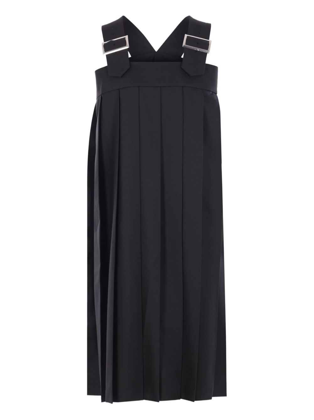 pleated buckled dress Highlights - Black - Pleated design - Buckled criss-cross straps - Sleeveless - Square neck Imported Composition Polyester 100% Washing instructions Read Manufacturer Guidelines