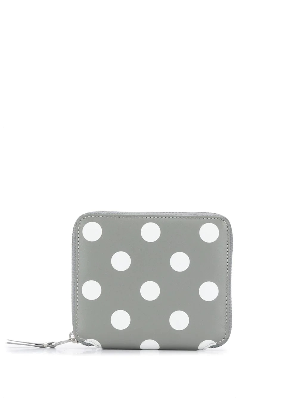 polka-dot compact wallet Grey and white leather polka-dot compact wallet from Comme Des Garcons Wallet featuring silver-tone hardware, a note compartment, multiple interior card slots and an all around zip fastening. Imported Composition Outer: Calf Leather 100% SIZE & FIT Measurement DEPTH 0.78 in(2 cm) LENGTH 5.11 in(13 cm) WIDTH 3.93 in(10 cm)