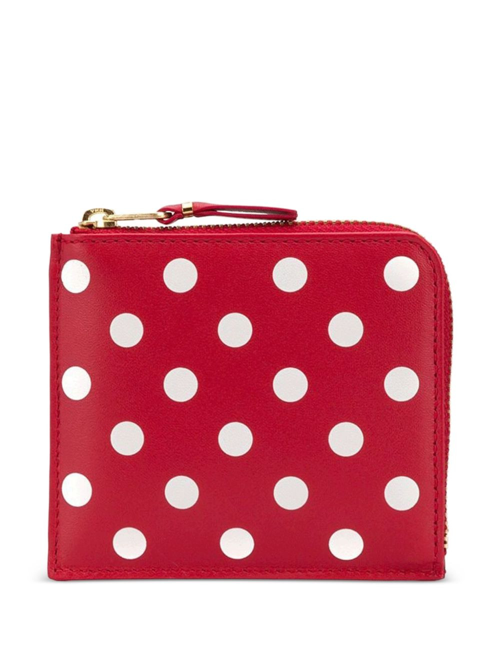 polka-dot L-zip wallet Highlights - Red - Polka dot pattern - L-shape zip fastening - Leather - Gold-tone zip puller Imported Composition Outer: Calf Leather 100% SIZE & FIT Measurement LENGTH 4.33 in(11 cm) WIDTH 3.74 in(9.5 cm)