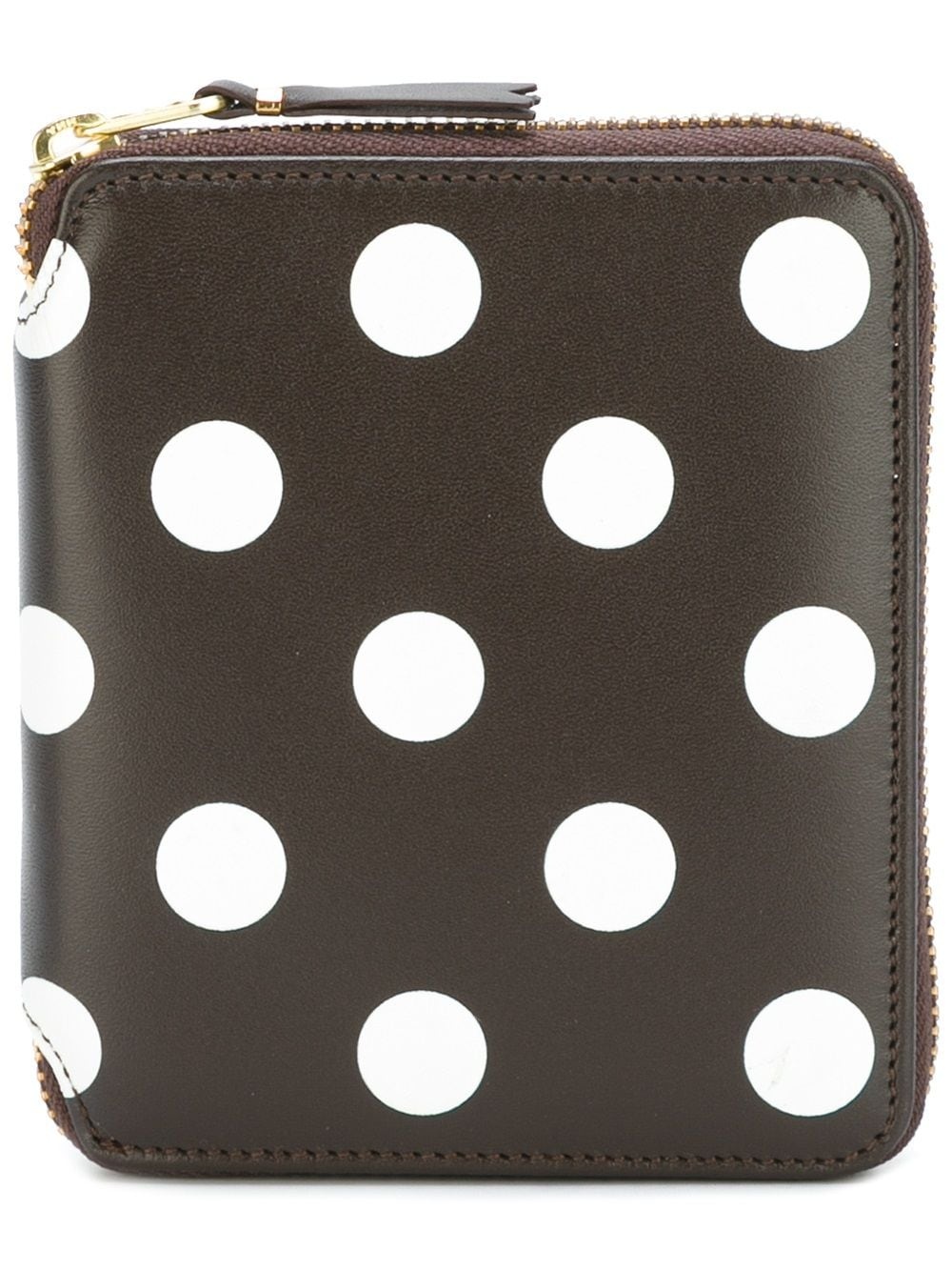 polka dot wallet Brown and white calf leather polka dot wallet from Comme Des Garcons Wallet. Imported Composition Outer: Calf Leather 100% SIZE & FIT Measurement WIDTH 3.93 in(10 cm) LENGTH 4.72 in(12 cm) DEPTH 0.39 in(1 cm)