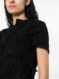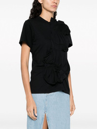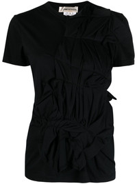 ruched T-shirt Highlights - Black - Cotton blend - Panelled design - Ruched detailing - Crew neck - Short sleeves - Straight hem Imported Composition Polyester 50%, Cotton 50% SIZE & FIT Model measurements Height 5 ft 10 in(1.79 m) Bust/Chest 33.07 in(84 cm) Hips 35.82 in(91 cm) Waist 24.01 in(61 cm) Measurement BUST 33.07 in(84 cm) LENGTH 23.62 in(60 cm) SLEEVE LENGTH 7.08 in(18 cm) Shoulder Width 14.96 in(38 cm) FittingInformation Designed for a slim fit that sits just away from the body offering a close yet comfortable fit Made from a midweight non-stretch fabric, this piece offers minimal elasticity when worn This piece fits true to size – take your usual size