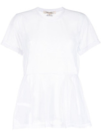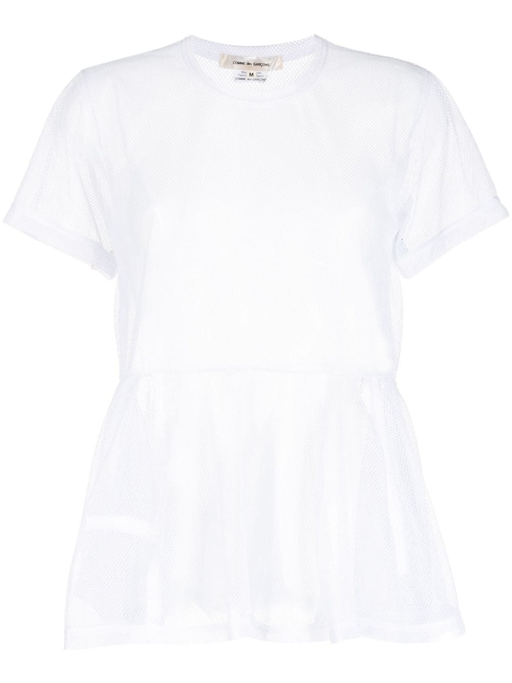 ruffle-hem mesh T-shirt Highlights - White - Mesh detailing - Semi-sheer construction - Round neck - Short sleeves - Ruffle hem Imported Composition Polyester 100% SIZE & FIT Model measurements Height 5 ft 9 in(1.76 m) Bust/Chest 31.1 in(79 cm) Hips 35.03 in(89 cm) Waist 24.4 in(62 cm) FittingInformation Designed to be unstructured, offering a loose fit throughout Made from a midweight non-stretch fabric, this piece offers minimal elasticity when worn This piece fits true to size – take your usual size Washing instructions Hand Wash