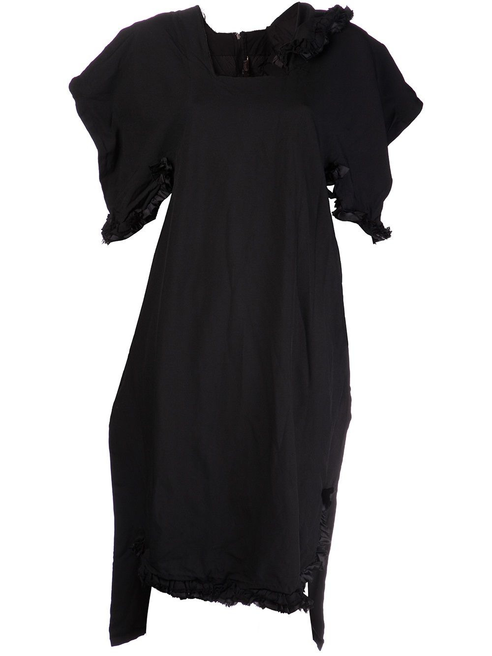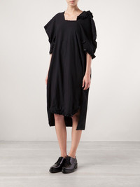 ruffle trimmed dress Black polyester ruffle trimmed dress from Comme Des Garcons featuring a square neck, a concealed rear zip fastening, short sleeves, a ruffled design and a high low hem. Imported Composition Polyester 100% SIZE & FIT Model measurements Height 5 ft 10 in(1.77 m) Bust/Chest 29.92 in(76 cm) Hips 35.82 in(91 cm) Waist 24.01 in(61 cm) Washing instructions Dry Clean Only