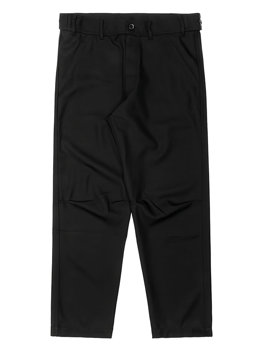 button-fastening woven trousers Highlights - Black - Woven texture - Two patch pockets - Curved yoke - Button fastening - Straight leg Made in France Composition Wool 100% Washing instructions Read Manufacturer Guidelines