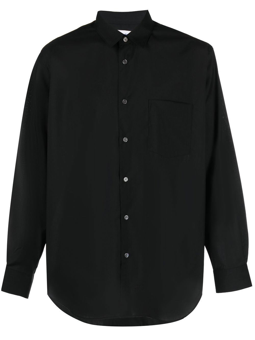 classic button-up shirt black wool classic collar front button fastening long sleeves curved hem Made in France Composition Wool 100% SIZE & FIT Model measurements Height 6 ft 2 in(1.87 m) Bust/Chest 36.41 in(92.5 cm) Hips 37 in(94 cm) Waist 29.52 in(75 cm) FittingInformation This piece fits true to size. We recommend you get your regular size Cut for a loose fit Made with a mid-weight non-stretch fabric Washing instructions Dry Clean Only