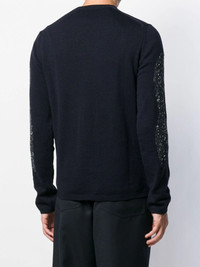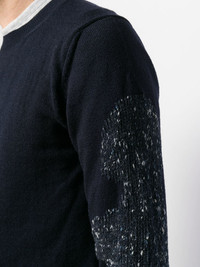 contrast knit jumper Navy blue wool blend contrast knit jumper from Comme Des Garcons Shirt featuring a ribbed round neck, long sleeves and a ribbed hem and cuffs. Imported Composition Acrylic 67%, Wool 32%, Polyamide 1% SIZE & FIT Model measurements Height 6 ft 1 in(1.86 m) Bust/Chest 37.4 in(95 cm) Hips 37 in(94 cm) Waist 30.7 in(78 cm) FittingInformation This piece fits true to size. We recommend you get your regular size Cut for a relaxed fit Made with a mid-weight fabric Washing instructions Dry Clean Only