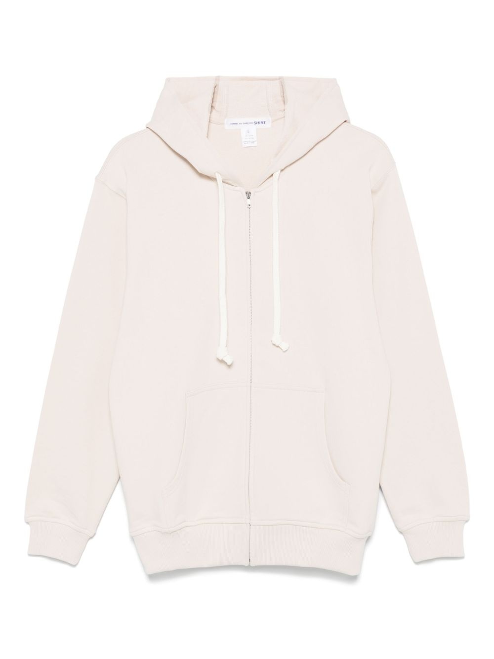 cotton hoodie Highlights - Light beige - Concealed front zip fastening - Drawstring hood - Two side patch pockets - Ribbed cuffs and hem Imported Composition Cotton 100% SIZE & FIT Model measurements Height 6 ft 0 in(1.84 m) Bust/Chest 35.82 in(91 cm) Hips 37 in(94 cm) Waist 28.34 in(72 cm) FittingInformation Designed for a relaxed fit, this piece allows for comfort and movement when worn The ribbed hem offers a close, comfortable fit Made from a midweight non-stretch fabric, this piece offers minimal elasticity when worn Washing instructions Machine Wash