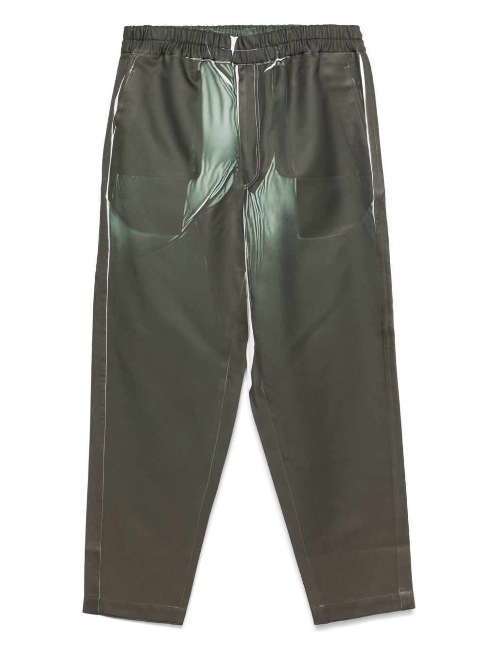 denim-print trousers Highlights - Khaki - Concealed front zip fastening - Elasticated waistband with internal drawstring - Two side slit pockets - Two rear patch pockets Imported Composition Polyester 100%