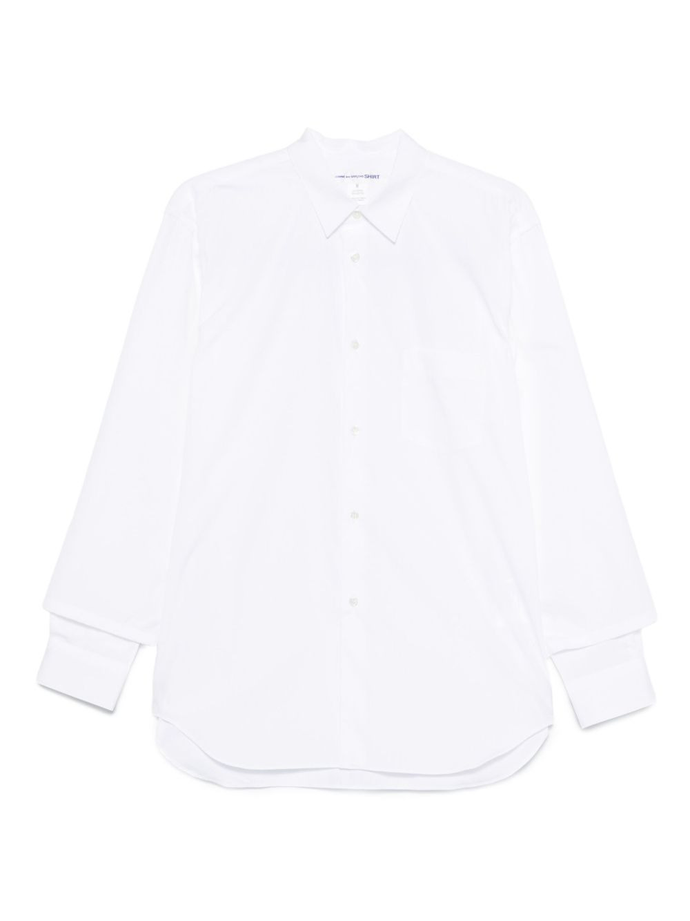 double-cuff shirt Highlights - White - Front button fastening - Long sleeves - Layered cuffs - Curved hem - Classic collar Imported Composition Fabric 100% SIZE & FIT Model measurements Height 6 ft 0 in(1.84 m) Bust/Chest 35.82 in(91 cm) Hips 37 in(94 cm) Waist 28.34 in(72 cm) Washing instructions Read Manufacturer Guidelines