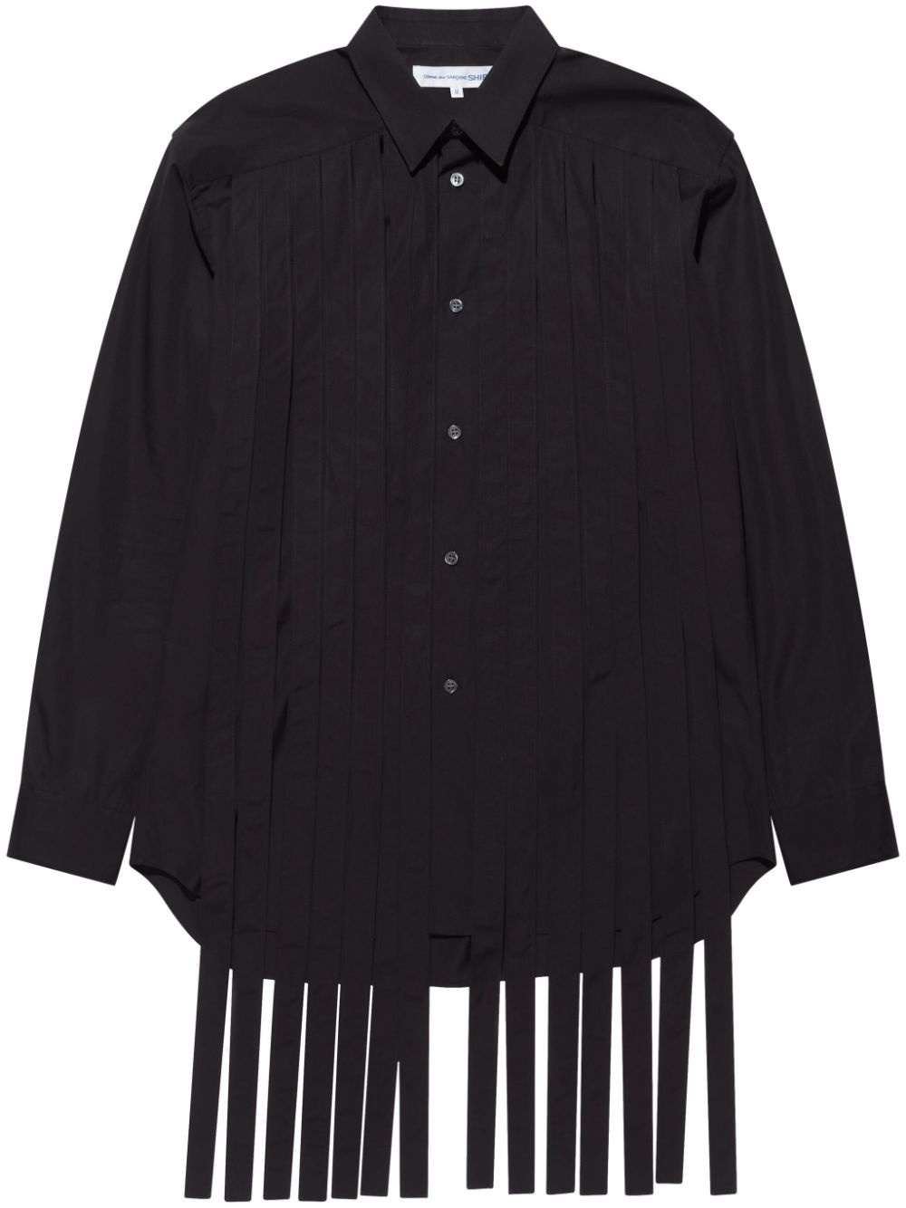 fringed pleated cotton shirt Highlights - Black - Cotton - Pleat detailing - Fringe detailing - Classic collar - Front button fastening - Long sleeves - Buttoned cuffs - Asymmetric hem Made in France Composition Cotton 100%