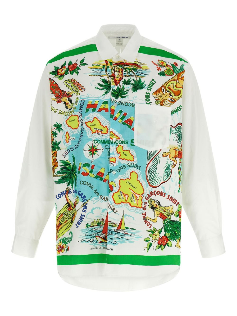island-print poplin shirt Highlights - Off-white - Button closure - Chest pocket - Long cuffed sleeves - Patterned front - Asymmetrical hem Made in France Composition Cotton 100% Washing instructions Read Manufacturer Guidelines