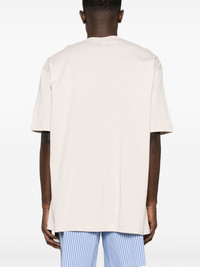 logo-print T-shirt Highlights - Beige - Crew neck - Drop shoulder - Short sleeves - Straight hem Imported Composition Cotton 100% SIZE & FIT Model measurements Height 6 ft 0 in(1.84 m) Bust/Chest 35.82 in(91 cm) Hips 37 in(94 cm) Waist 28.34 in(72 cm) FittingInformation Designed to be unstructured, offering a loose fit throughout Made from a midweight non-stretch fabric, this piece offers minimal elasticity when worn