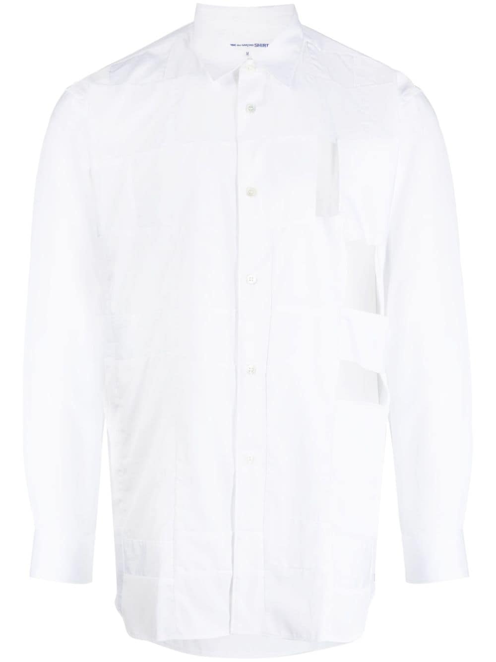 panelled cut-out cotton shirt Highlights - Optical white - Cotton - Panelled design - Cut-out detailing - Pleat detailing - Classic collar - Front button fastening - Long sleeves - Buttoned cuffs - Curved hem Made in France Composition Cotton 100% SIZE & FIT Model measurements Height 6 ft 2 in(1.89 m) Bust/Chest 37.4 in(95 cm) Hips 36.61 in(93 cm) Waist 28.34 in(72 cm)