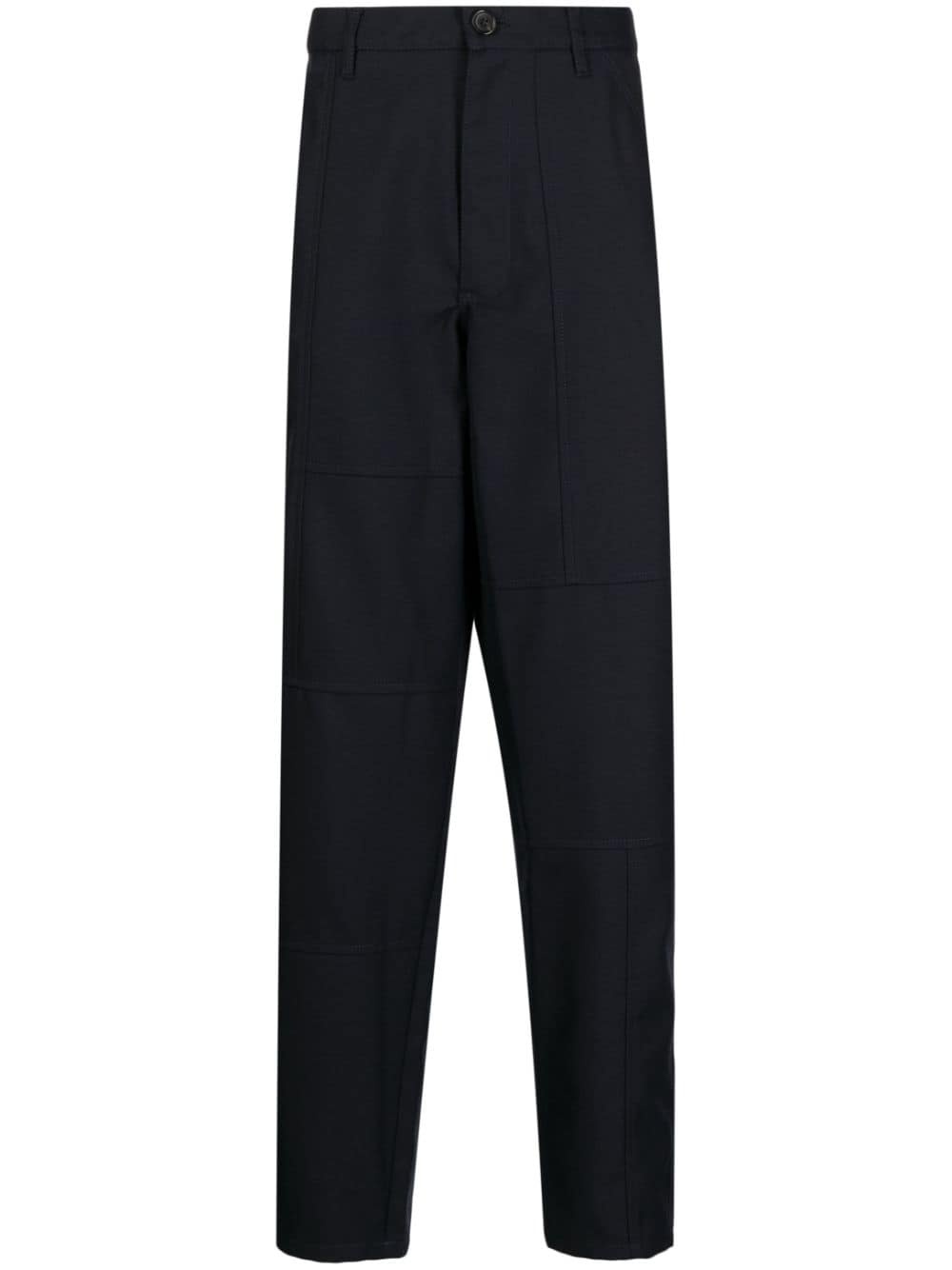 panelled tailored trousers Highlights - Navy blue - Knitted construction - Panelled design - Front button and zip fastening - Belt loops - Two diagonal pockets to the sides - Straight hem Made in France Composition Polyester 55%, Wool 45% SIZE & FIT Model measurements Height 6 ft 2 in(1.87 m) Bust/Chest 34.25 in(87 cm) Hips 36.22 in(92 cm) Waist 29.52 in(75 cm) FittingInformation Designed for a relaxed tapered leg, allowing a comfortable loose fit above the knee with a closer fit towards the calves Made from a midweight non-stretch fabric This piece fits true to size – take your usual size Washing instructions Read Manufacturer Guidelines