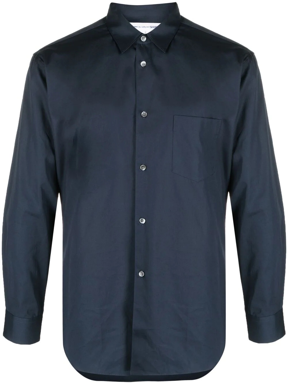 pointed collar cotton shirt navy blue cotton front button fastening long sleeves buttoned cuffs curved hem Made in France Composition Cotton 100% SIZE & FIT Model measurements Height 6 ft 2 in(1.88 m) Bust/Chest 36.61 in(93 cm) Hips 35.82 in(91 cm) Waist 27.95 in(71 cm) Measurement CHEST 44.09 in(112 cm) LENGTH 29.13 in(74 cm) WAIST 44.88 in(114 cm) SLEEVE LENGTH 22.44 in(57 cm) Shoulder Width 17.71 in(45 cm) FittingInformation This piece fits true to size. We recommend you get your regular size Cut for a loose fit Made with a mid-weight non-stretch fabric Washing instructions Machine Wash