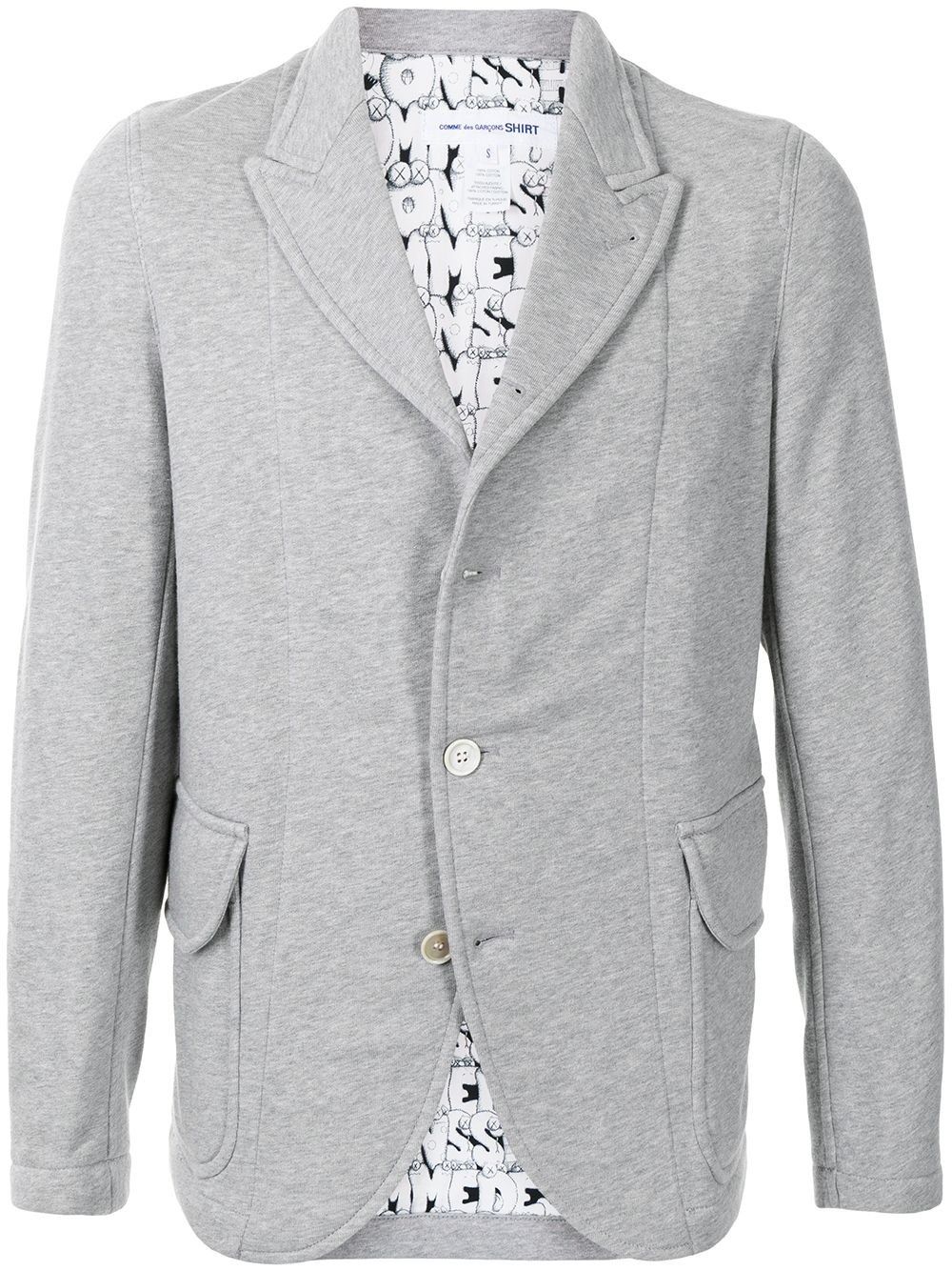 single-breasted cotton blazer light grey cotton peak lapels front button fastening long sleeves two front flap pockets straight hem Imported Composition Cotton 100% SIZE & FIT Model measurements Height 6 ft 2 in(1.87 m) Bust/Chest 35.43 in(90 cm) Hips 36.41 in(92.5 cm) Waist 27.55 in(70 cm) FittingInformation This piece fits true to size. We recommend you get your regular size Cut for a slim fit Made with a mid-weight fabric Washing instructions Dry Clean Only