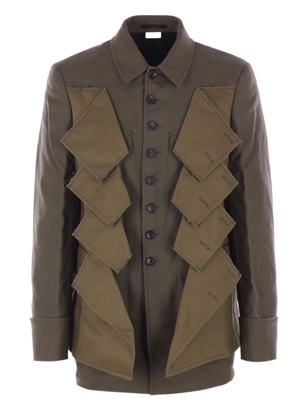 single-breasted jacket Highlights - Brown and green - Overlapping front panels - Pointed collar - Button fastening - Multiple pockets - Long sleeves Imported Composition Outer: Wool 100%, Cotton 100% Lining: Cupro 100% Washing instructions Read Manufacturer Guidelines