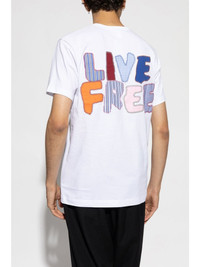 slogan-print T-shirt Highlights - White/multicolour - Cotton - Slogan print to the rear - Round neck - Short sleeves - Straight hem Imported Composition Cotton 100% SIZE & FIT FittingInformation Designed for a relaxed fit, this piece allows for comfort and movement when worn Made from a midweight non-stretch fabric, this piece offers minimal elasticity when worn