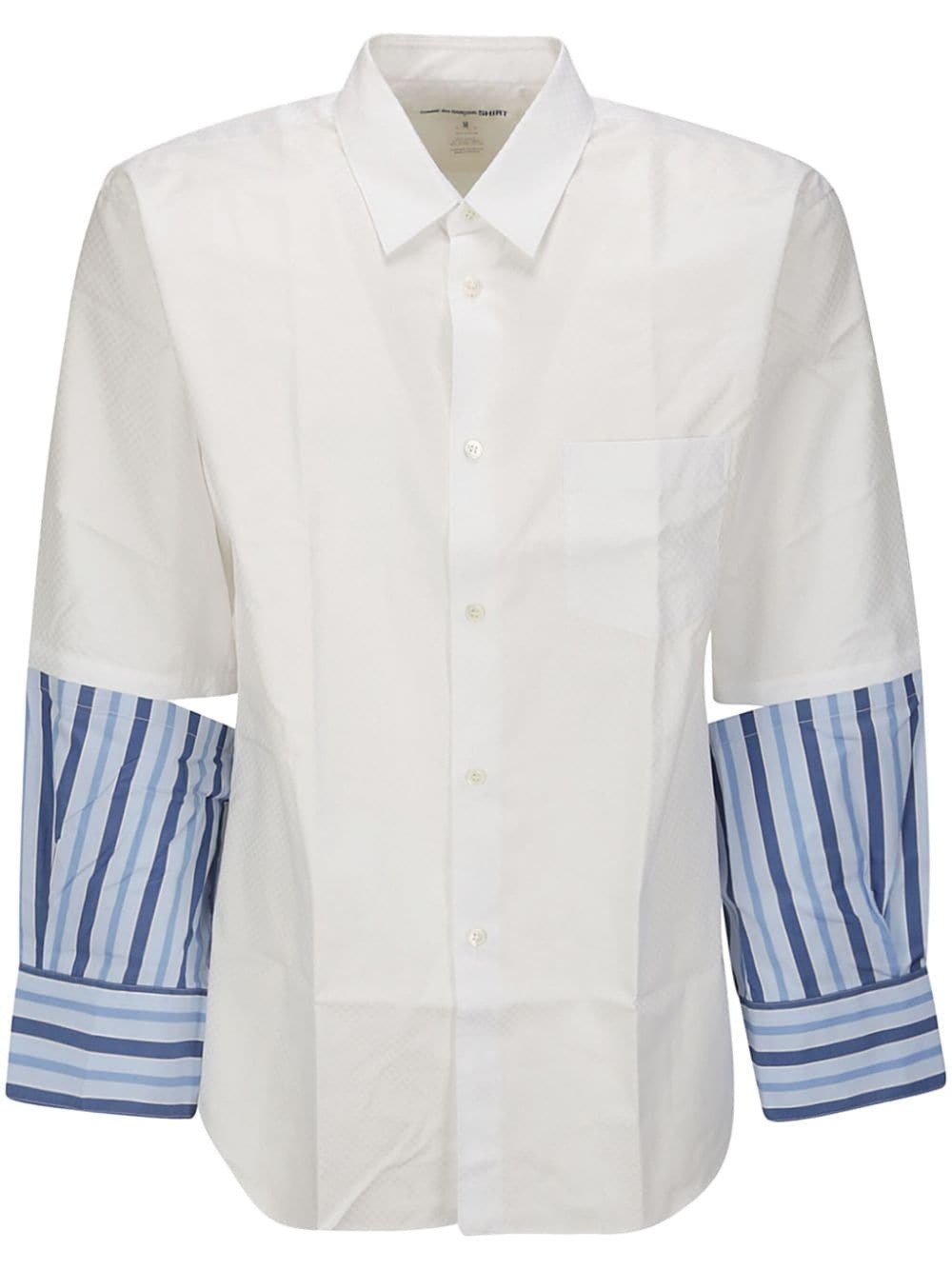 stripe detail cotton shirt Highlights - White - Cotton - Classic collar - Button fastening - Buttoned cuffs - Front welt pocket - Stripe detailing - Curved hem Made in France Composition Cotton 100%