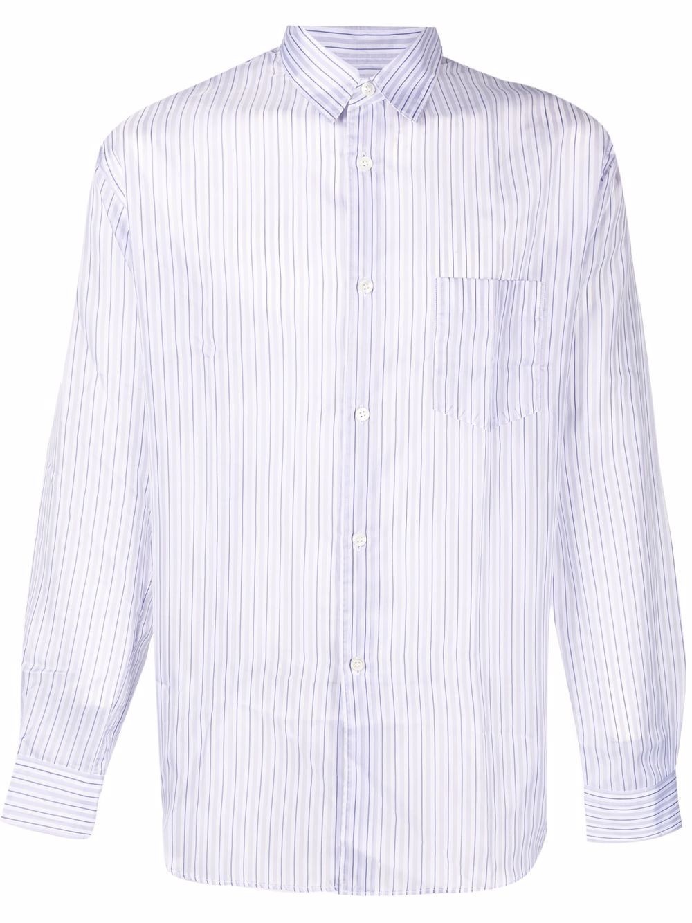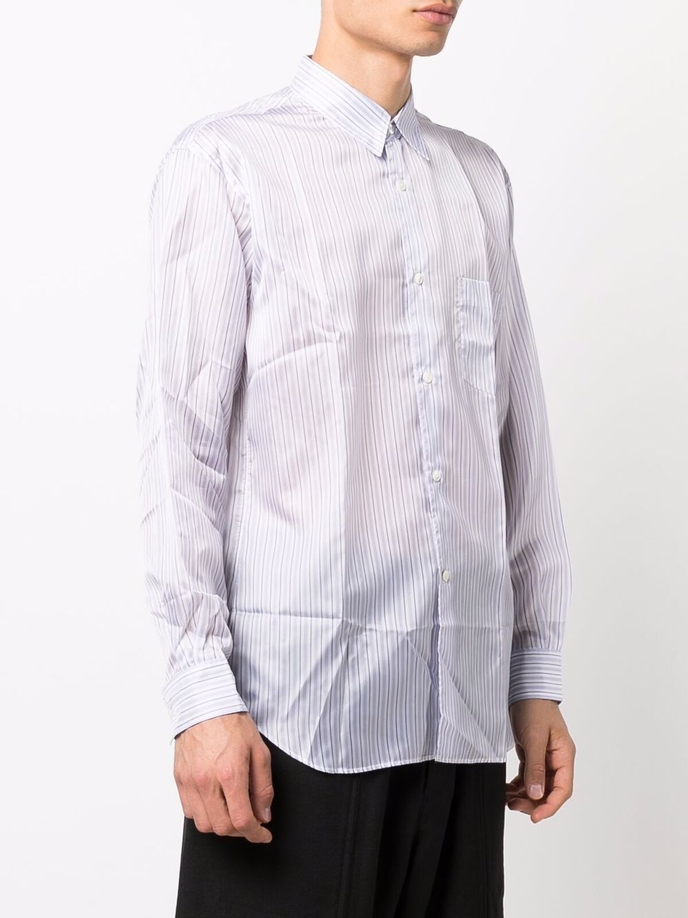 White stripe-print shirt from COMME DES GARÇONS SHIRT featuring stripe print, classic collar, front button fastening, long sleeves and chest patch pocket. Highlights - White - Stripe print - Classic collar - Front button fastening - Long sleeves - Chest patch pocket Made in France Composition Cupro 100%