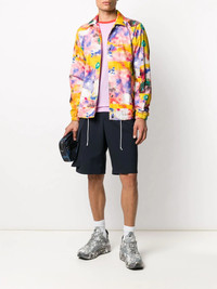 tie-dye graphic print jacket Highlights - Pink/multicolour - Cotton - Classic collar - Snap-button fastening - Long sleeves - Two side slit pockets - Elasticated cuffs Made in France Composition Outer: Cotton 100% Lining: Polyester 100% SIZE & FIT Model measurements Height 6 ft 1 in(1.85 m) Bust/Chest 35.82 in(91 cm) Hips 37.79 in(96 cm) Waist 29.13 in(74 cm) FittingInformation This piece fits true to size. We recommend you get your regular size Cut for a loose fit Made with a mid-weight non-stretch fabric Measurement CHEST 40.94 in(104 cm) SLEEVE LENGTH 34.25 in(87 cm) LENGTH 28.34 in(72 cm) WAIST 39.37 in(100 cm) Shoulder Width 17.32 in(44 cm) Washing instructions Dry Clean Only